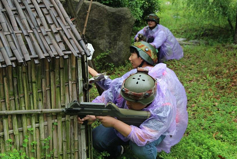 11日,奇力所有特訓(xùn)人員起個(gè)大早,趕往拓展的硝煙戰(zhàn)場(chǎng)——竹海荷花山。適逢細(xì)雨漣漣,地上露水淙淙,卻難以掩蓋戰(zhàn)場(chǎng)的陣陣殺氣。紅外線感應(yīng)真人CS野戰(zhàn),在山野之中,一觸即發(fā)。