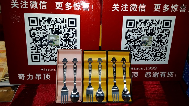 活動現場,人潮翻涌。金華奇力利用本次轟動性的展會效應。精心布置奇力吊頂展位,形象領先的美式風尚,以“梵帝”系列新品立足,產品型號、規格等的轉型,讓前來購選的消費者眼前一亮,吸引了眾多消費者蒞臨選購,將奇力展位圍得水泄不通。奇力銷售部多員干將,聯手金華導購團隊,認真傾聽消費者的心聲,給予周到全面的服務。套餐搭配,贈品相隨,傾力呈現……