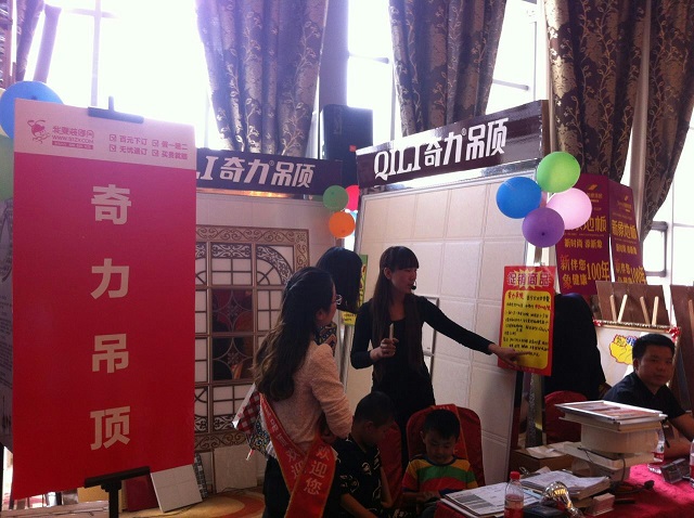活動現場,人氣爆棚。蒞臨現場的賓客們憑邀請函入場,參觀各家展廳,并互相探討裝修心得。奇力吊頂以“美式風尚”系列產品取勝,輔以運城奇力團隊的熱情解說,在活動尚未正式開始,便已掀起搶購狂潮。