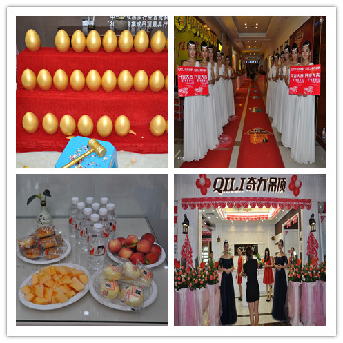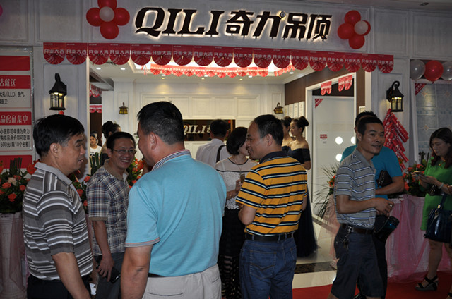 活動(dòng)當(dāng)天,漳州店張燈結(jié)彩,火紅一片。搶眼的活動(dòng)陣勢(shì),引來(lái)過(guò)往行人進(jìn)店選購(gòu)!碩大的“奇力吊頂”發(fā)光字,在門頭上旭旭生輝,霸氣榮耀!親朋好友的齊襄聚賀,為漳州旗艦店的崛起助威吶喊!