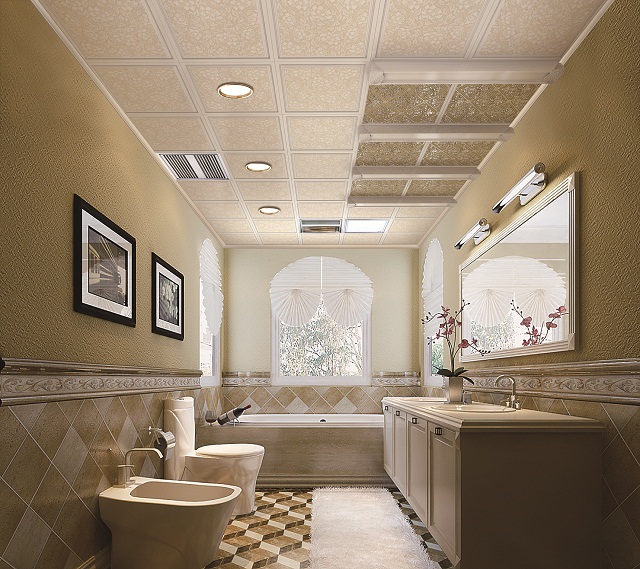 衛(wèi)浴間的水汽較重,所以,要選擇那些具有防水、防腐、防銹特點(diǎn)的材料做頂棚是很重要的。
