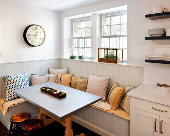 小編推薦:柔軟的座位擁有客廳沙發(fā)般的舒適享受,木質(zhì)的餐桌散發(fā)著田園的自然味道,窗外綠枝婆娑,如果還覺得單調(diào)一副小掛畫即可以給空間不同感覺。