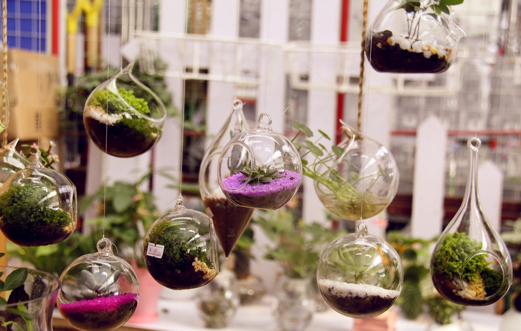另外,水培植物很適合擺上餐桌。如果是需要花盆土壤的,可以選擇編織的懸掛花架,飄飄然的度假風。在陽光柔和的午后,幾本舊書和甜點,一切都剛剛好。