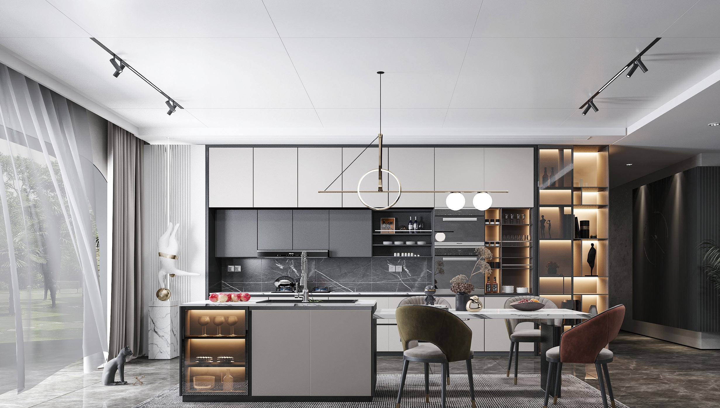生活的藝術(shù),于每一絲的小細(xì)節(jié)中流露出來。無主燈設(shè)計(jì)、冷靜的色彩、簡潔的線條,都給人以簡約隨意之感,但又不失精致。